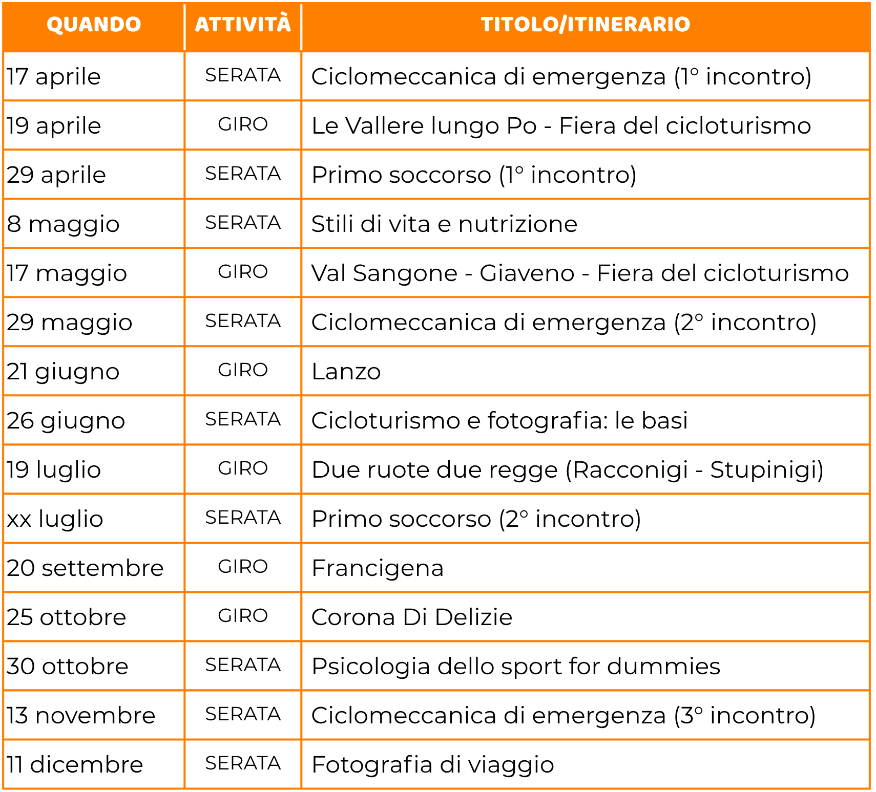 Facci sapere se ci sarai ? Saremmo molto felici di iniziare l'estate con te in bici!](https://scontent-iad3-1.cdninstagram.com/v/t51.75761-15/502384156_17962131788932034_5584579658411079274_n.jpg?stp=dst-jpg_e35_tt6&_nc_cat=108&ccb=7-5&_nc_sid=18de74&efg=eyJlZmdfdGFnIjoiQ0FST1VTRUxfSVRFTS5iZXN0X2ltYWdlX3VybGdlbi5DMyJ9&_nc_ohc=3Wfe1xm4qFcQ7kNvwHcoFJP&_nc_oc=AdrsbrLk2mwiswiROYbErza-NxOXs0Hye4nEQxEBbpRb8Gc2_KGtSR0sFaudW7J7GCw&_nc_zt=23&_nc_ht=scontent-iad3-1.cdninstagram.com&edm=ANo9K5cEAAAA&_nc_gid=HQnIwNUKBIUsAwVuYRFB_A&_nc_tpa=Q5bMBQEU88AyTzg-ixXfOwPSj3JxgheiR5yeFLnXGE5PD02Arn--flLsRFGuiAedBVH6LLIaf5j3BtsP5g&oh=00_Af1DwyyY5dc012xePJ9vVE-gv9idfI28QYR8FAUJU9-M3g&oe=69EB6DD7)